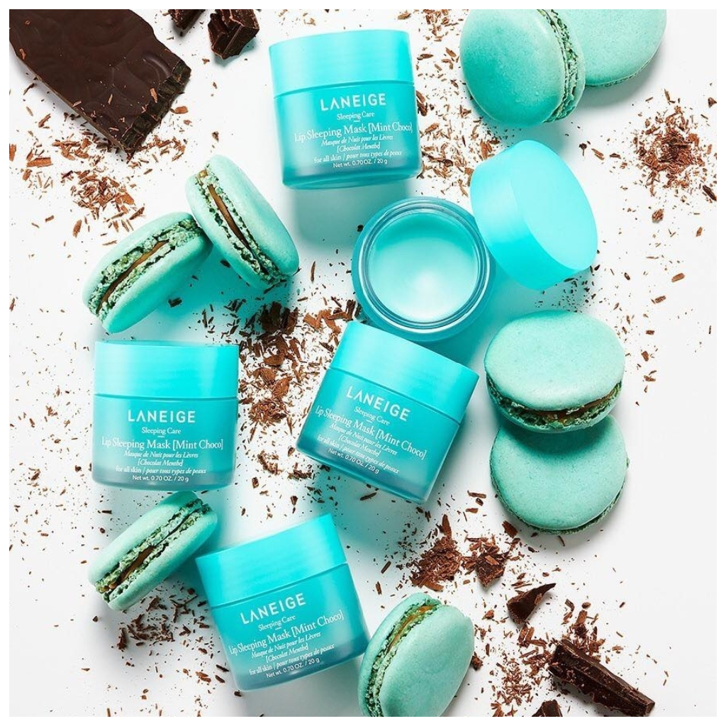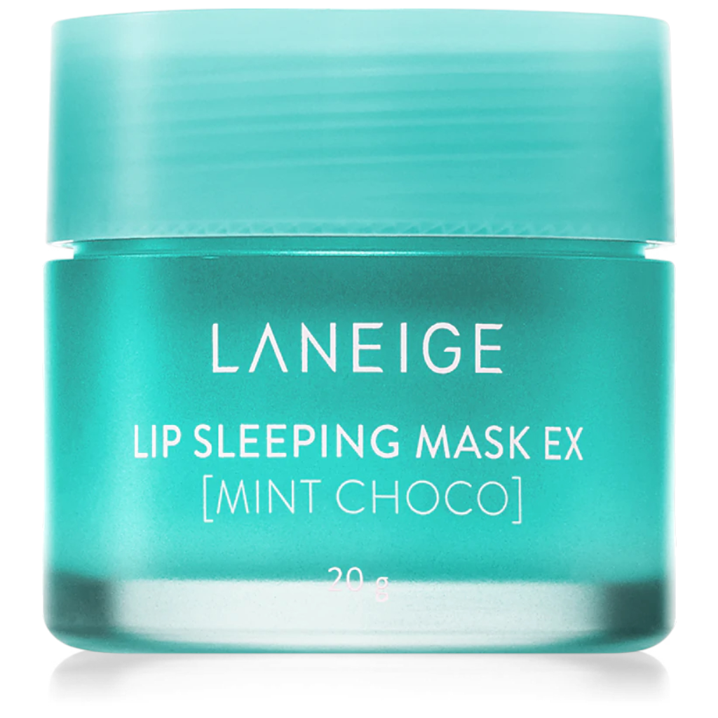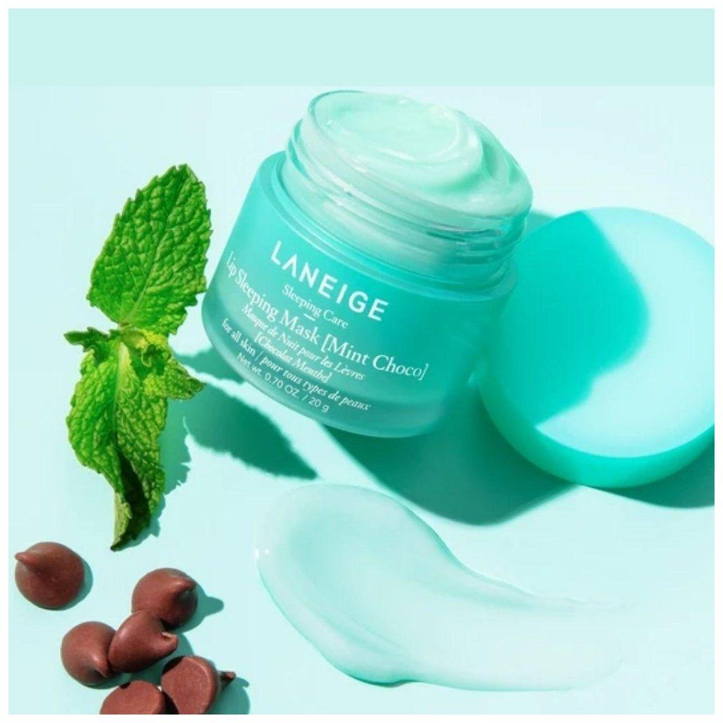 Laneige Noční maska na rty máta a čokoláda intenzivně regeneruje suché a popraskané rty. Díky obsahu bambuckého másla a másla murumuru účinně bojuje proti suchým a popraskaným rtům, vyhlazuje je a zanechává je měkké. Přípravek byl dále obohacen o ovocné šťávy z granátového jablka, malin a hroznového vína, které jsou zdrojem vitamínů a antioxidantů. Má osvěžující vůni máty a čokolády pro příjemný zážitek během aplikace.