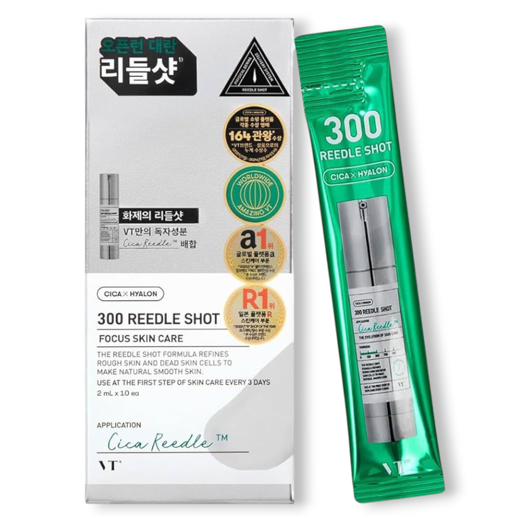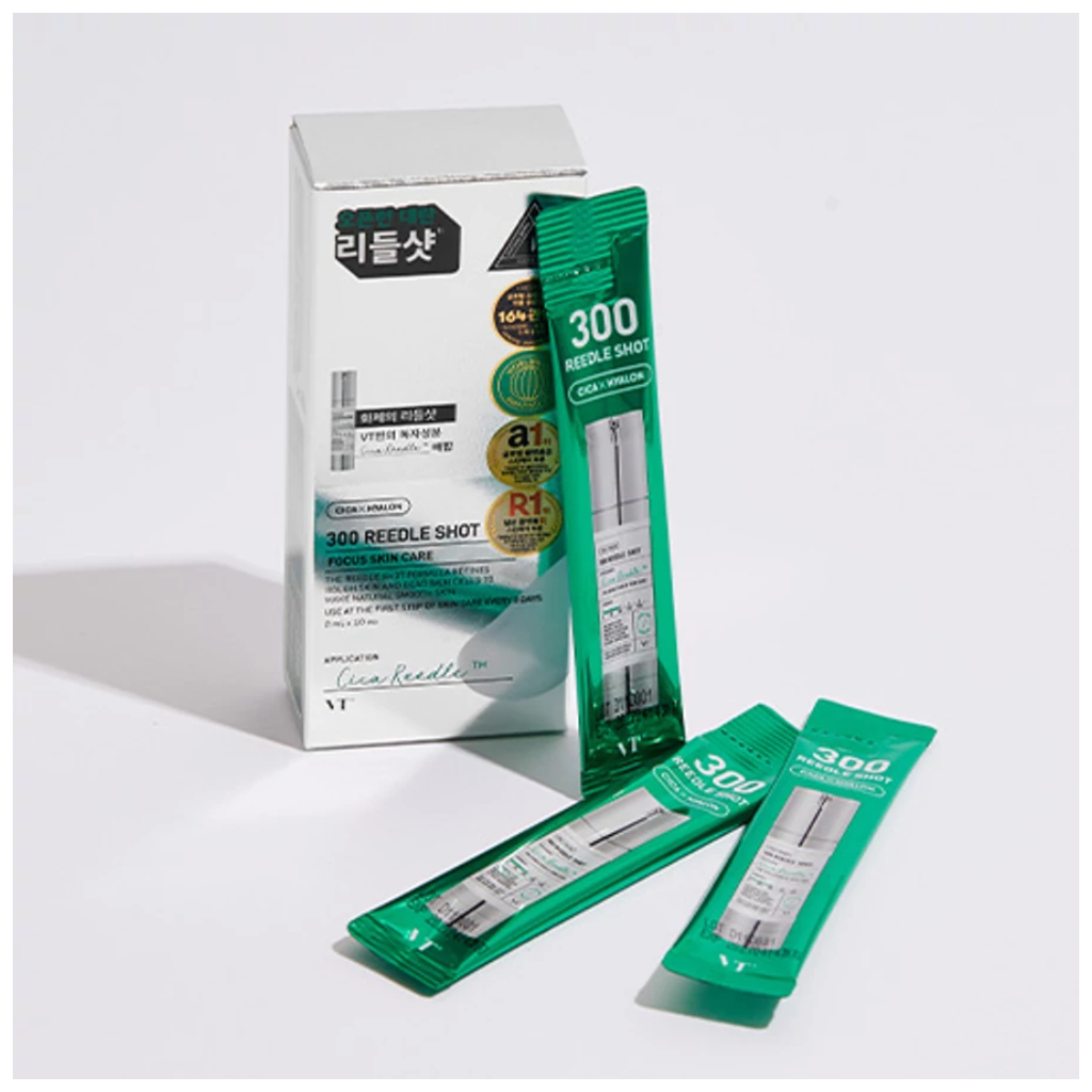 VT Cosmetics Mini mikrojehličkové sérum 300 je ten správný první krok vaší rutiny k zářivé a vyhlazené pleti, nyní intenzivněji a ještě efektivněji. S technologií Cica Reedle™ využívá jemné mikrojehličky, které zlepšují průnik aktivních látek. Dermatologicky testováno, je vhodné pro všechny typy pleti, včetně citlivé a problematické. Pomáhá minimalizovat a hojit zarudnutí, rány a jizvy po akné a vyhlazuje všechny nerovnosti. Tento shot podporuje přirozený obnovovací proces pleti, pomáhá redukovat jemné linky a zanechává pokožku plnou vitality.
